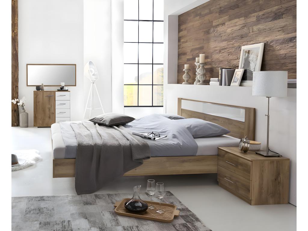 Chambre à coucher en panneaux de particules imitation chêne poutre/blanc/Artigeo - Dim 160x200 cm PUJL40989