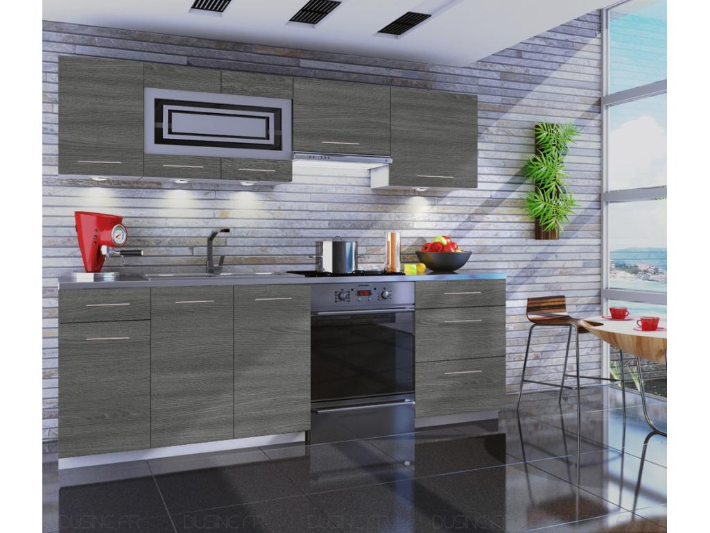 Cuisine Chezlova 7 éléments - bois grisé 2m40 - grand casserolier MLAH73582