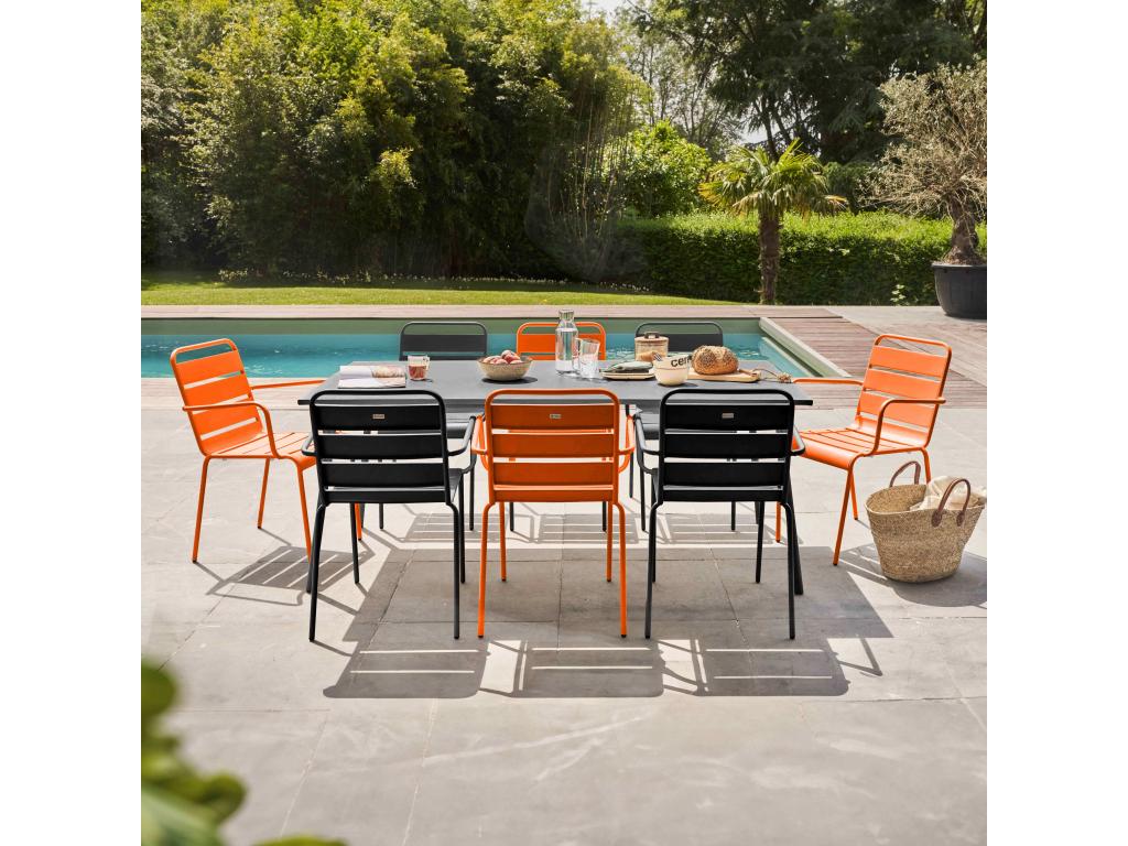 Ensemble table de jardin et 8 fauteuils en métal Chezlova et gris - Chezlova LMMY16596