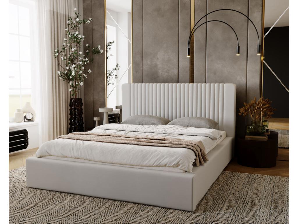 Lit rembourré avec rangement - 120x200 - lit double - velours - gris clair - Chezlova COVJ88190