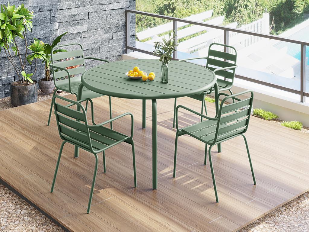 Table de jardin ronde D.110 cm en métal - Vert amande - Artigeo TXND06277